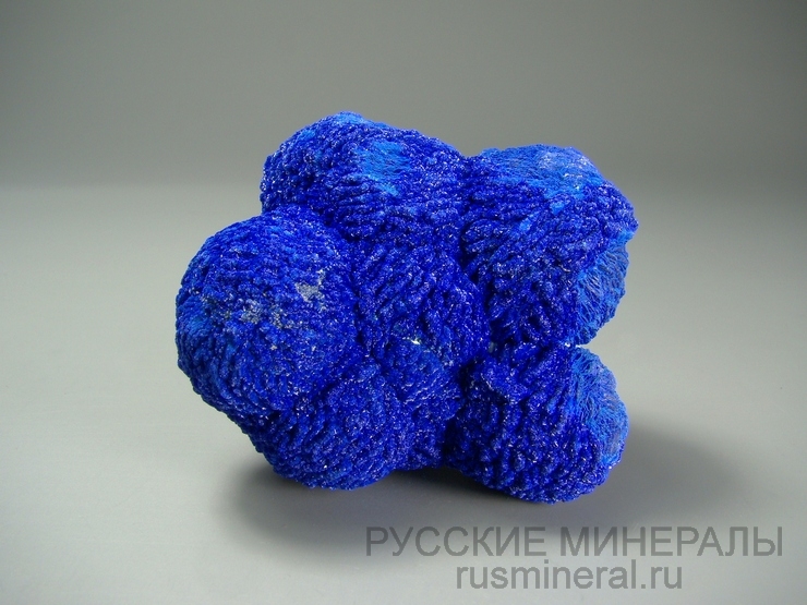 Несколько сросшихся сферических азуритовых конкреций разного размера образуют фигуру довольно сложной формы.