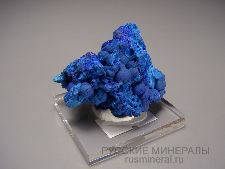 Небольшой сросток концентрически-зональных скорлуповатых сферолитов азурита.