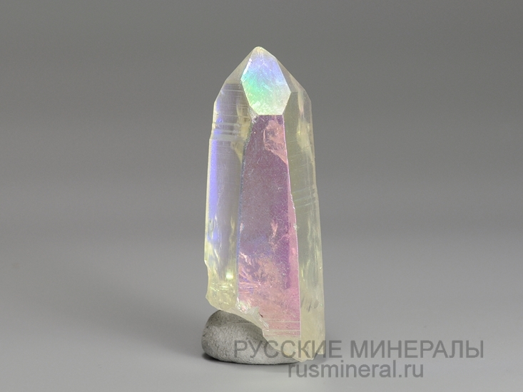 Кристалл природного кварца с искусственно нанесенным на поверхность тончайшим металлическим покрытием. Этот метод облагораживания обычного кварца разработан и запатентован в США в 2006 году: процесс осаждения паров металла на поверхность образца происходит в вакуумной камере при температуре 871 °C . Матовый белый цвет с радужной опалесценцией получают в результате напыления платины и серебра.