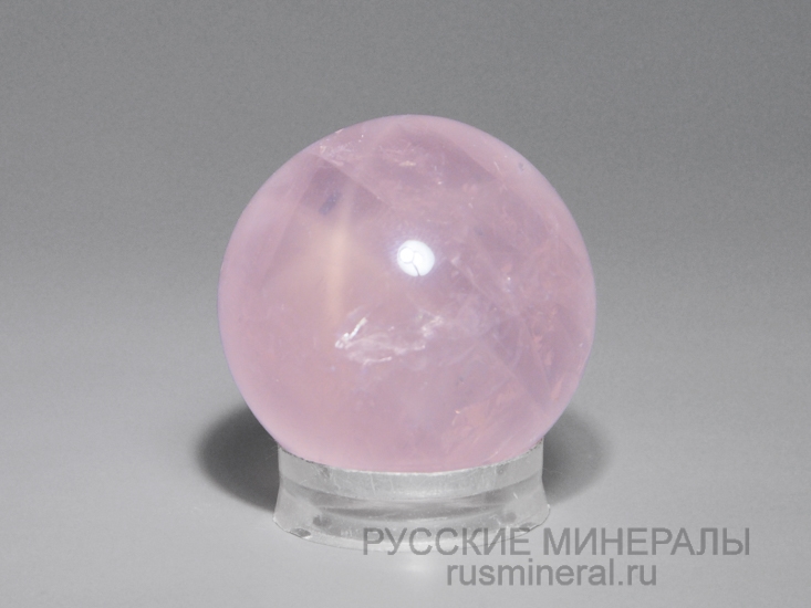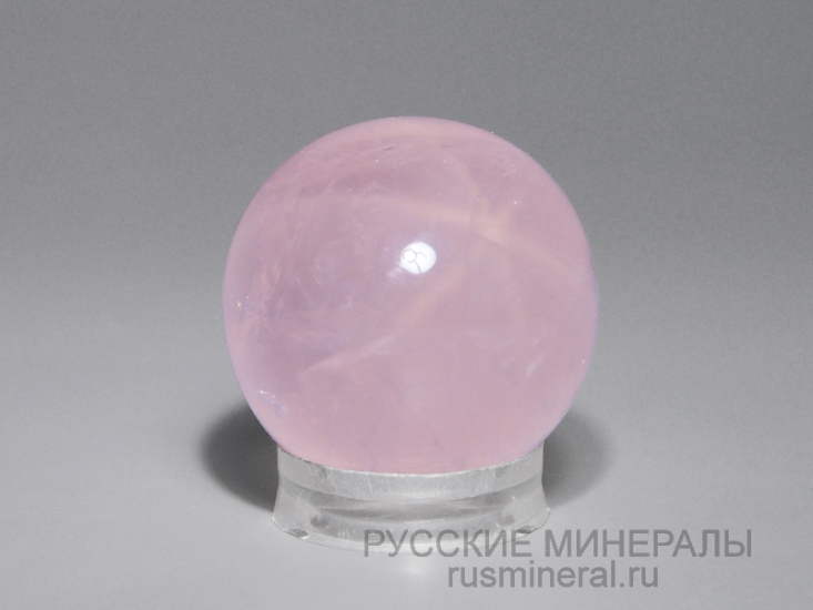 Шар из розового кварца с оптическим эффектом астеризма: при ярком узконаправленном освещении на его поверхности появляется «звезда» из пересекающихся световых лучей, "плавающая" при повороте шара. Этот оптический эффект вызван присутствием в кварце множества закономерно ориентированных микроскопических иголочек рутила.