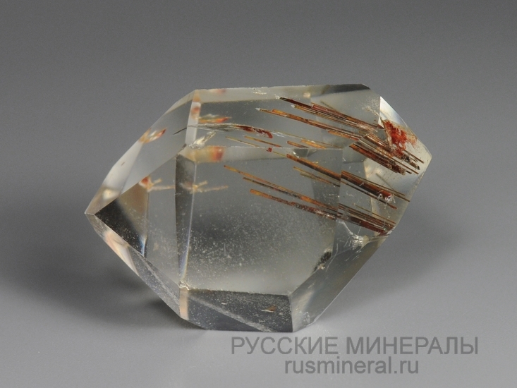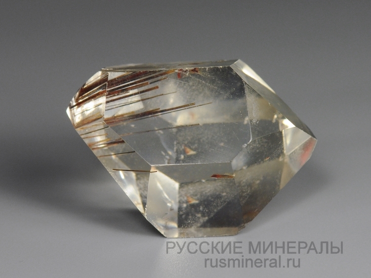 Полированный кристалл прозрачного кварца с включениями игольчатого рутила ("волосатик").