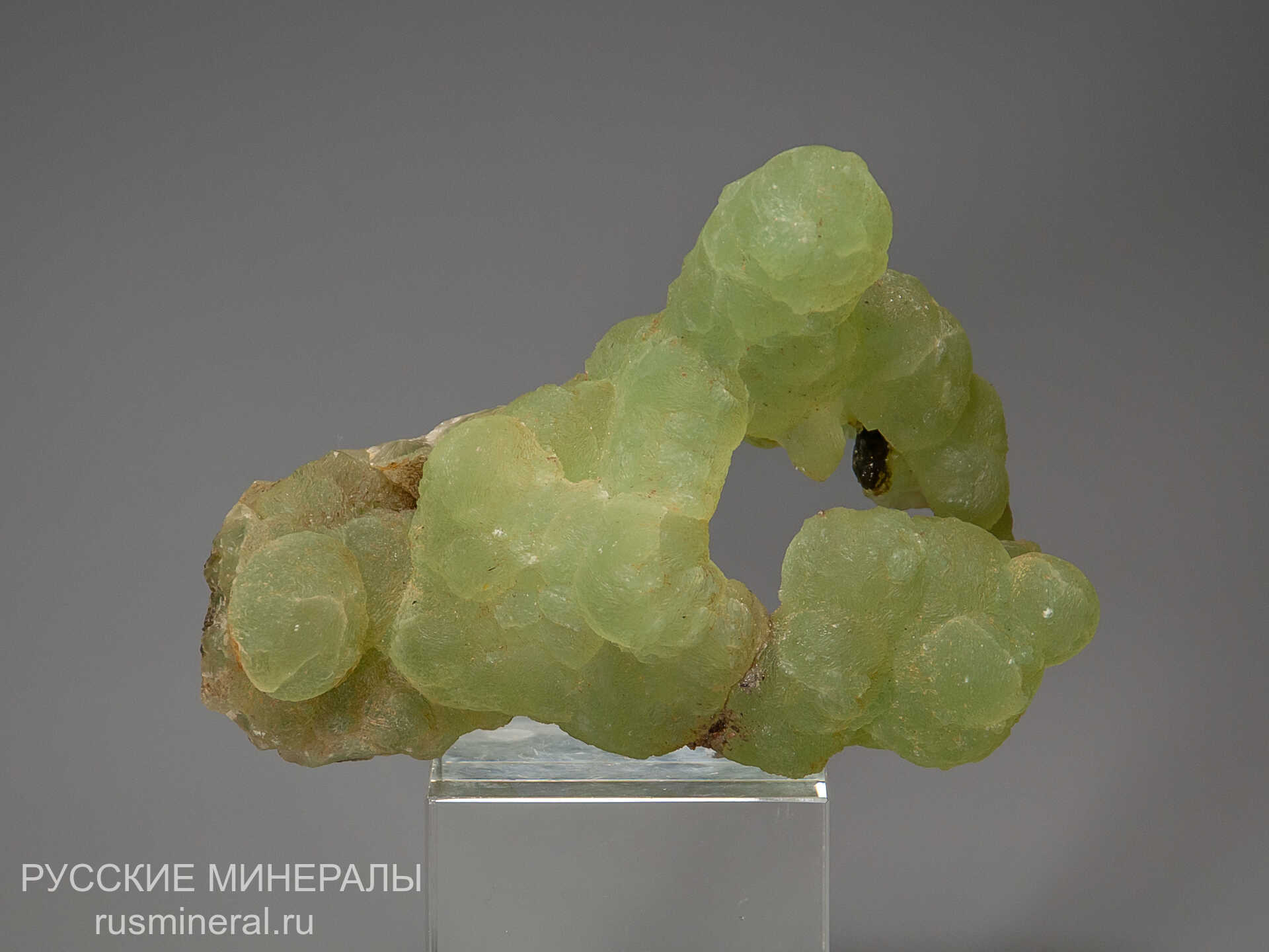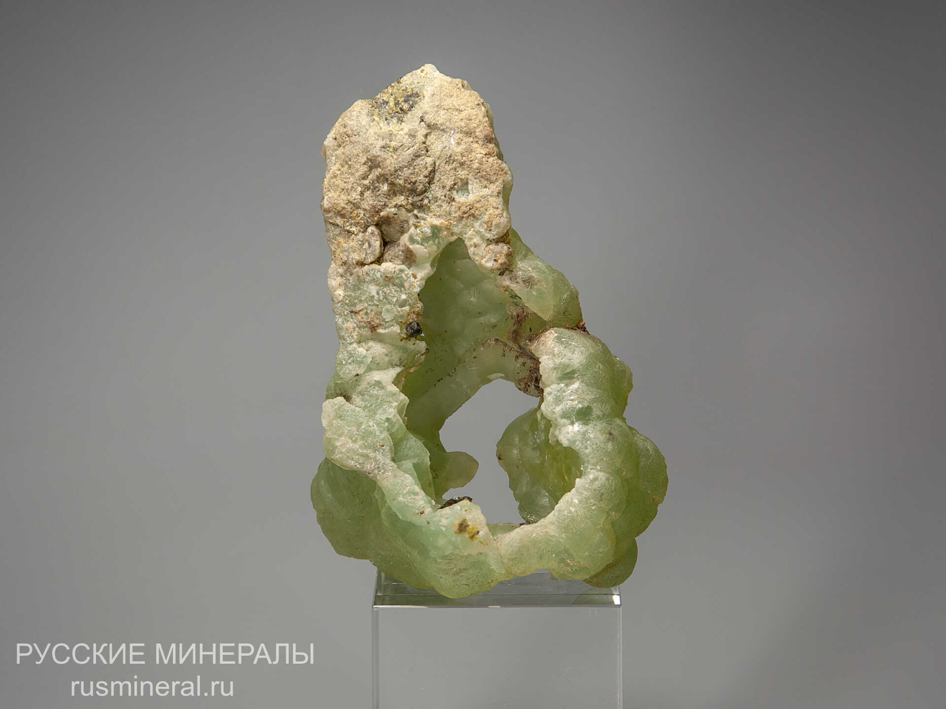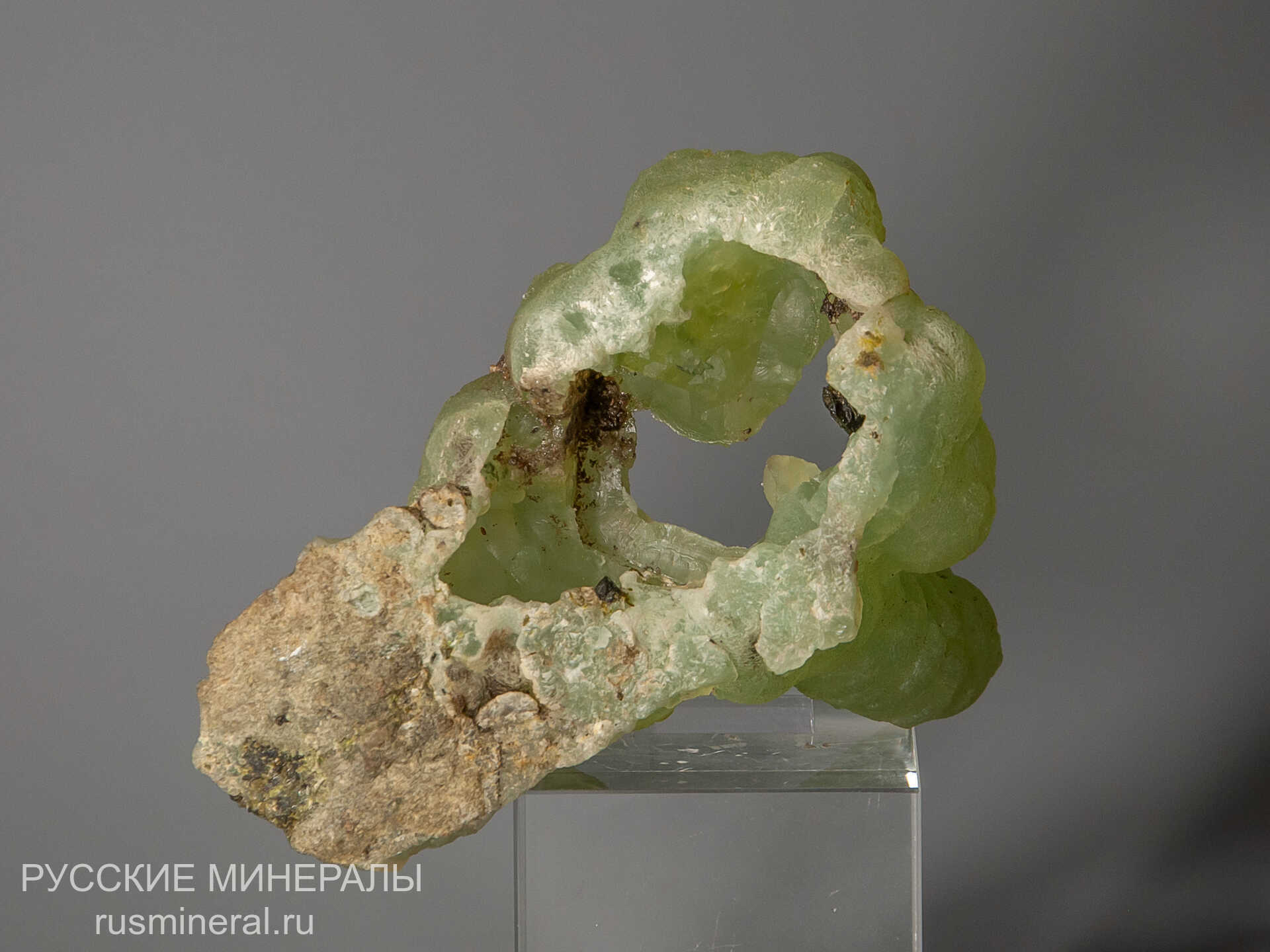 Футляровидная сферолитовая корка пренита, ранее облекавшая крупные кристаллы неизвестного минерала (эпидота?), в настоящее время полностью растворившиеся.