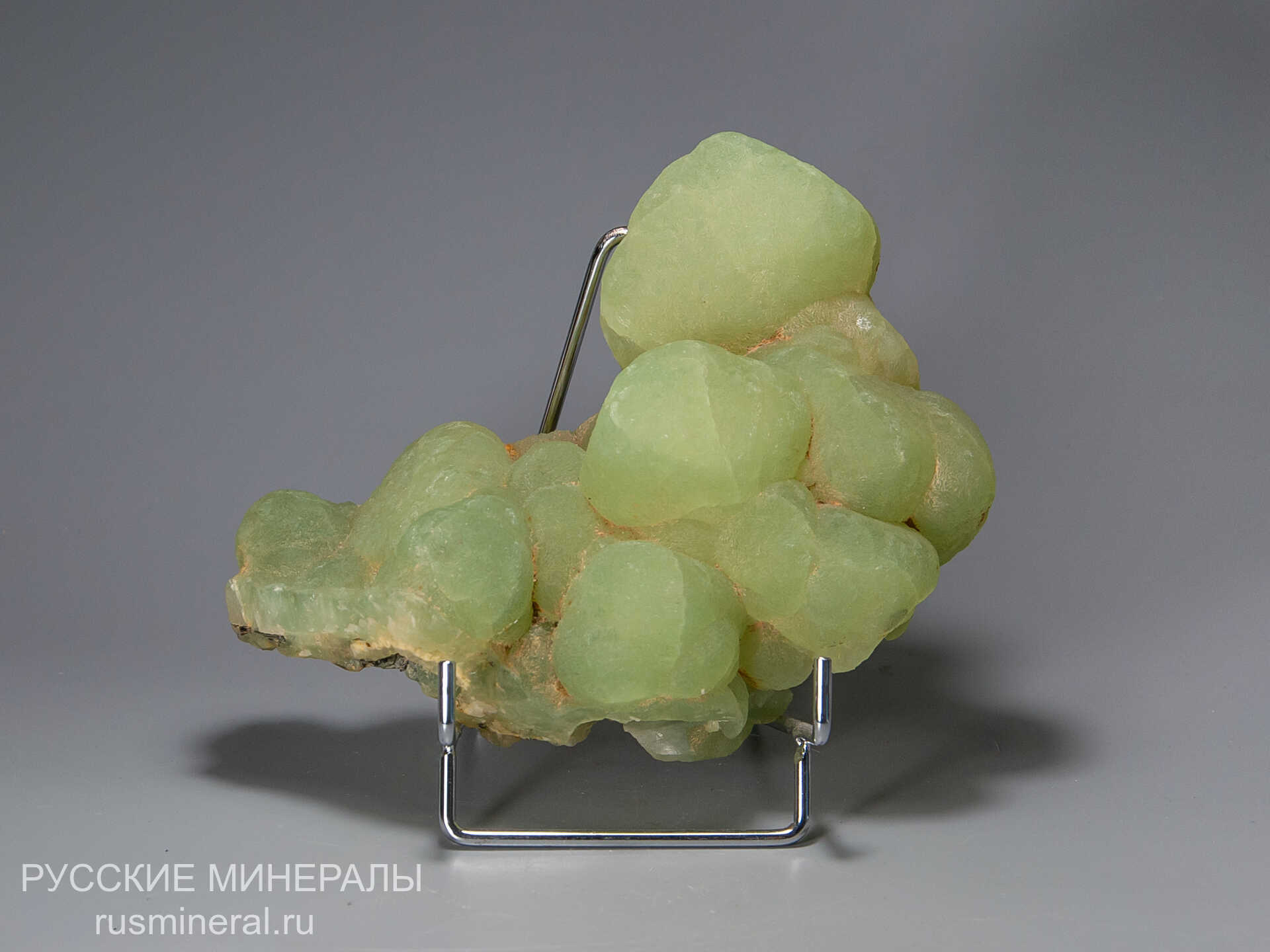 Футляровидная сферолитовая корка пренита в ассоциации с эпидотом, ранее облекавшая крупные кристаллы неизвестного минерала, в настоящее время полностью растворившегося.